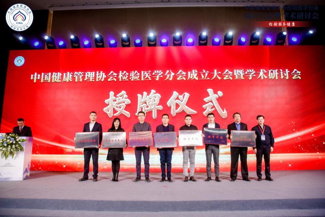 会上,中国康健治理协会副会长兼秘书长周华教授宣布中国康健治理协会检验医学分会常务理事单元和理事单元名单并发表牌匾,