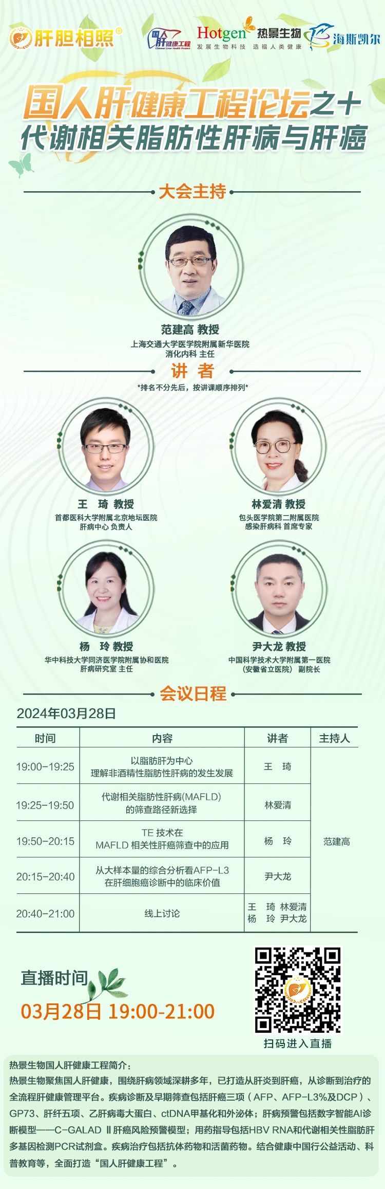 直播预告 | 国人肝康健工程论坛之十——代谢相关脂肪性肝病与肝癌