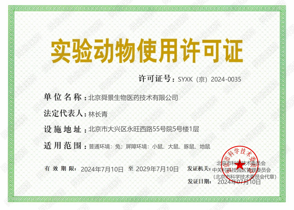 喜讯!舜景医药实验动物治理中心获颁“实验动物使用许可证”