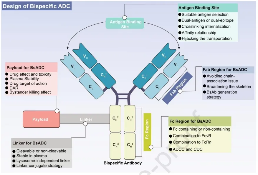 Ŀǰ£¬BsADCsµÄÑо¿½¹µãÖ÷Òª¼¯ÖÐÔÚHER2¡¢EGFRºÍc-METµÈ°ÐµãÉÏ¡£ÔÚADCµÄ×é³ÉÖУ¬¿¹Ìå¡¢Á¬½Ó×ÓºÍÓÐÐ§ÔØºÉÿ¸ö²¿ÃŶ¼ÐèÒª¾¹ý¾«ÐĵĶÀÁ¢ÓÅ»¯¡£¶ÔÕâЩҪº¦×é³É²¿ÃŵÄÈκÎ΢Сµ÷Õû£¬¶¼¿ÉÄܶÔÒ©ÎïµÄÁÙ´²ÌØÐÔ·¢ÉúÏÔÖøµÄÓ°Ïì¡£Òò´Ë£¬ÔÚÉè¼ÆÐÂÒ»´úµÄBsADCsʱ£¬Ó¦¸Ã½«¿¹Ìå¡¢Á¬½Ó×Ó-Ò©Î︴ºÏÎïµÄÓÅ»¯ºÍżÁª¼¼ÊõÊÓΪһ¸öÏ໥¹ØÁªµÄϵͳ£¬ÕâÒªÇó½ÓÄÉÒ»ÖÖÈ«¾ÖÐÔµÄÕ½ÂÔÀ´½øÐÐ×ۺϿ¼ÂÇ¡£