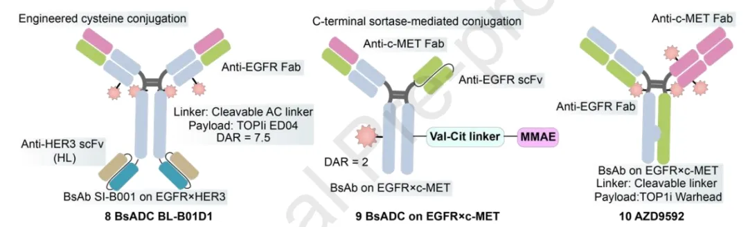 Ŀǰ£¬ÒÑÓжàÖÖ°ÐÏòc-METºÍEGFRµÄË«ÌØÒìÐÔ¿¹Ì壨BsAb£©±»±¨µÀ£¬ËüÃÇÔÚÒÖÖÆÖ×ÁöÔöÖ³ºÍ×ªÒÆ·½ÃæÏÔʾ³öÐͬЧӦ¡£ÔÚBsADCµÄÉè¼ÆÖУ¬¾«ÐÄÑ¡Ôñ±íλ×éºÏ¶ÔÓÚÖÆÖ¹¶Ôc-METµÄÌ«¹ý»ò²¿Ãż¤»îÖÁ¹ØÖØÒª¡£AZD9592ÊÇÕë¶ÔEGFR/c-MetµÄADC£¬Ëüͨ¹ý¿ÉÁѽâµÄÁ¬½Ó×ÓżÁªÁËÒ»ÖÖÐÂÐ͵ÄÍØÆËÒ칹ø1ÒÖÖÆ¼Á£¬Ö÷ҪĿµÄÊǽâ¾ö¶Ô°ÂÏ£ÌæÄᣨOsimertinib£©µÄÄÍÒ©ÎÊÌâ¡£ÓëEGFRÏà±È£¬AZD9592¶Ôc-MET¾ßÓиü¸ßµÄÇ׺ÍÁ¦£¬Ö¼ÔÚÌÔÌÓÉEGFR½éµ¼µÄÕý³£×éÖ¯¶¾ÐÔ¡£ÔÚ»¼ÕßÀ´Ô´µÄÒìÖÖÒÆÖ²£¨PDX£©Ä£ÐͺÍÄÍÒ©Ä£ÐÍÖУ¬ÎÞÂÛÊǵ¥¶ÀʹÓÃÕÕ¾ÉÓë°ÂÏ£ÌæÄáÁªºÏʹÓã¬AZD9592¶¼ÏÔʾ³öÁËÁ¼ºÃµÄ¿¹Ö×Áö»îÐÔ¡£