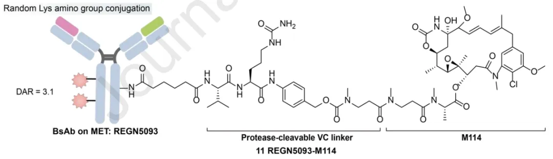 Ó봫ͳµÄMET°ÐÏò¿¹ÌåÒ©ÎïżÁªÎADC£©Ïà±È£¬Ë«±íλMET¡ÁMET-BsADCµÄÉè¼ÆÌṩÁËÒ»ÖÖ´´ÐµĽâ¾ö·½°¸À´Ó¦¶ÔÏÖÓÐÌôÕ½¡£ÕâÖÖË«¿¹Ô¿¹ÌåÄܹ»ÐγÉ2:2µÄ¿¹Ô-¿¹Ì帴ºÏÎ´Ó¶ø´Ù½øMETµÄÓÐЧÄÚ»¯ºÍÈÜøÌåתÔË¡£REGN5093-M114ͨ¹ýÂѰ×ø¿ÉÁѽâµÄÁ¬½Ó×Ó½«MaytansinoidÀàÓÐÐ§ÔØºÉM114Óë°ÐÏòMETµÄË«ÌØÒìÐÔ¿¹Ì壨BsAb£©µÄÍâòÀµ°±ËáżÁª£¬·¢ÉúÁËÆ½¾ùÒ©ÎÌå±È£¨DAR£©Îª3.12µÄBsADC¡£