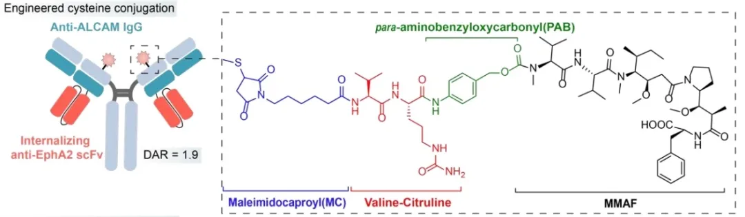 MC-VC-pab-MMAFÕâÒ»ÓÐÐ§ÔØºÉ¸´ºÏÎïͨ¹ý°ëë×°±Ëá²Ð»ùµÄλµãÌØÒìÐÔżÁª¼¼ÊõʵÏÖ¡£ÔÚBsADCsµÄË«ÖØÌØÒìÐÔ½áÏàÖúÓÃÏ£¬ÄÚ»¯Ð§¹û¿ÉÄÜ»áÒòͬʱ°ÐÏòµÄÏàÁÚ¿¹Ô¶øÏÔÖø±ä»¯£¬ÕâÓëËüÃǵıí´ï±ÈÀýÃÜÇÐÏà¹Ø¡£ÕâÖÖÌØÐÔÀ©Õ¹ÁË¿¹ÔÑ¡ÔñµÄ¹ã¶È£¬Ê¹µÃÔ±¾ÄÚ»¯ÄÜÁ¦½ÏÈõµÄBsADCsÉè¼Æ³ÉΪ¿ÉÄÜ¡£ÕâÖÖ´´ÐµÄÒªÁìΪÔöǿijЩ¿¹ÔµÄÄÚ»¯ÄÜÁ¦ÌṩÁËÒ»ÖÖ¾«Ï¸µÄÕ½ÂÔ£¬ÔöÇ¿ÁËBsADCs¶Ô¸ü¹ã·ºÖ×Áö¿¹ÔµÄ¶à¹¦Ð§ÐÔºÍÓÐЧÐÔ¡£