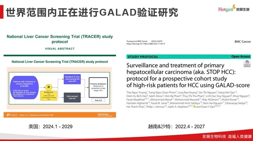 “肝癌三项”作为国际临床认可的有效指标,已获得海内外众多指南和共识推荐。日本通过“肝癌三项+超声”筛查体系将早诊率提升至62%,而中国肝癌目前早期诊断率不足30%,亟需通过普及筛查等措施缩小与国际上的差距。q千亿球友会基于中国病患人群配景开发的C-GALAD模型,更契合中国肝癌高风险人群的分层治理需求,其临床推广对提高我国肝癌早期预警能力,改善肝癌患者生存率具有重要价值。值得一提的是,美国等国家先后启动了GALAD模型的前瞻性验证研究。在海内,q千亿球友会从焦点优势出发,率先启动了C-GALAD模型的大规模多中心研究,并积极投身于海南省卫建委牵头的早期肝癌筛查行动中,以实际行动为我国肝癌防治事业孝敬力量。