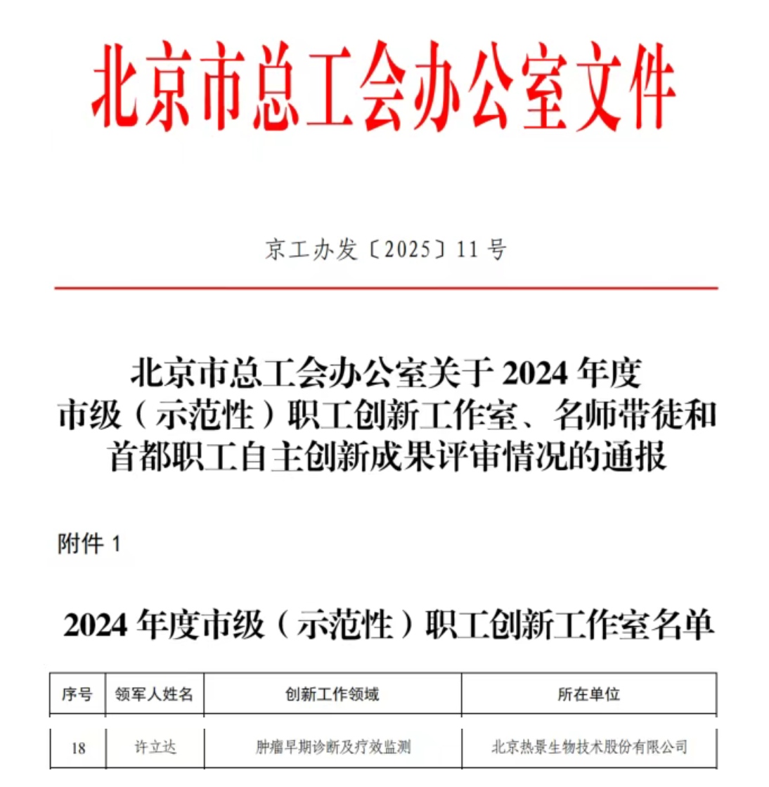 近日,北京市总工会宣布《关于2024年度市级(示范性)职工创新事情室、名师带徒和首都职工自主创新结果评审情况的通报》,q千亿球友会许立达研究员领军的“肿瘤早期诊断及疗效监测”创新团队荣获“北京市级职工创新事情室”称谓,该称谓是对事情室在肿瘤精准诊断领域连续创新与技术转化卓越孝敬的权威认可。创新驱动肿瘤诊断革新该事情室专注于肿瘤早期诊断与疗效监测技术的研发,依托公司焦点原创技术,乐成搭建起独具特色的多组学诊断技术平台,实现外泌体、卵白、核酸等肿瘤标志物从发现惠临床转化的领悟,助力肿瘤精准诊疗。