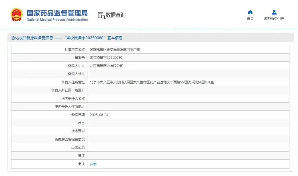 中国北京,2025年6月24日——q千亿球友会(股票代码:688068)孵化的北京禹景药业有限公司(以下简称“禹景药业”)自主研发的Akkermansia muciniphila YG2602(AKK YG2602)乐成通过国家药品监视治理局化妆品新原料存案(存案号:国妆原备字20250080),成为全球首个获批的AKK菌化妆品新原料。